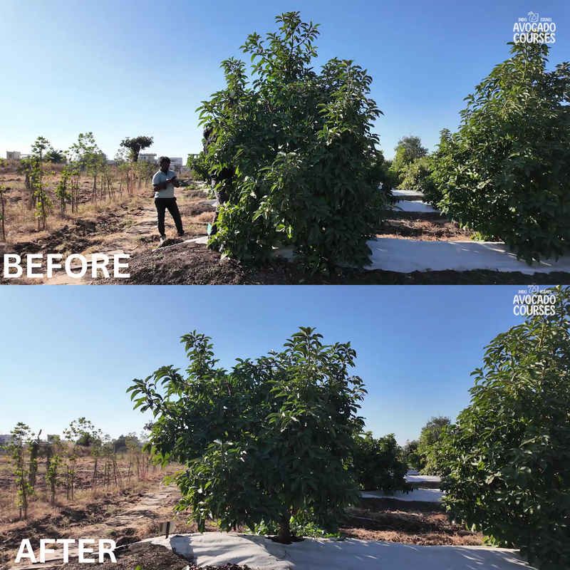 In this module, we share how everything you have learnt so far is applied in a 3-year-old avocado orchard. We demonstrate through 25 video examples of Harshit's Indo Israel Avocado orchard how to prune using the Israeli method - 2 (The full V method).